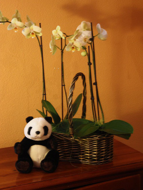H31. CESTA CON ORQUÍDEAS, PELUCHE Y TOQUILLA - 115 €